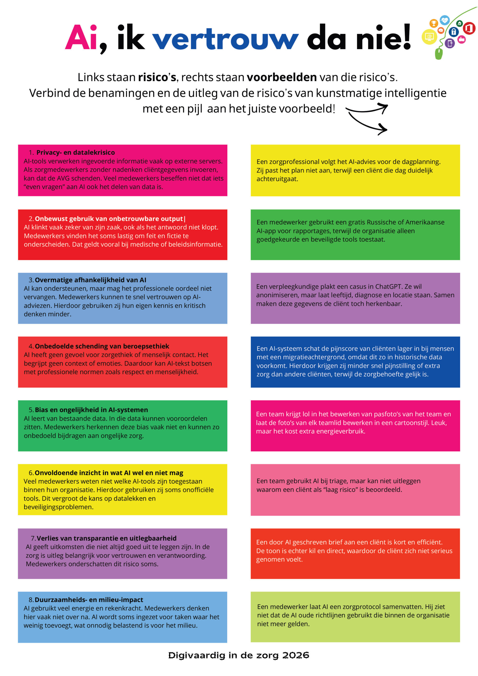 We delen een pdf met de namen van de risico’s en de uitleg die erbij hoort. Trek een lijn van het risico naar de juiste omschrijving.