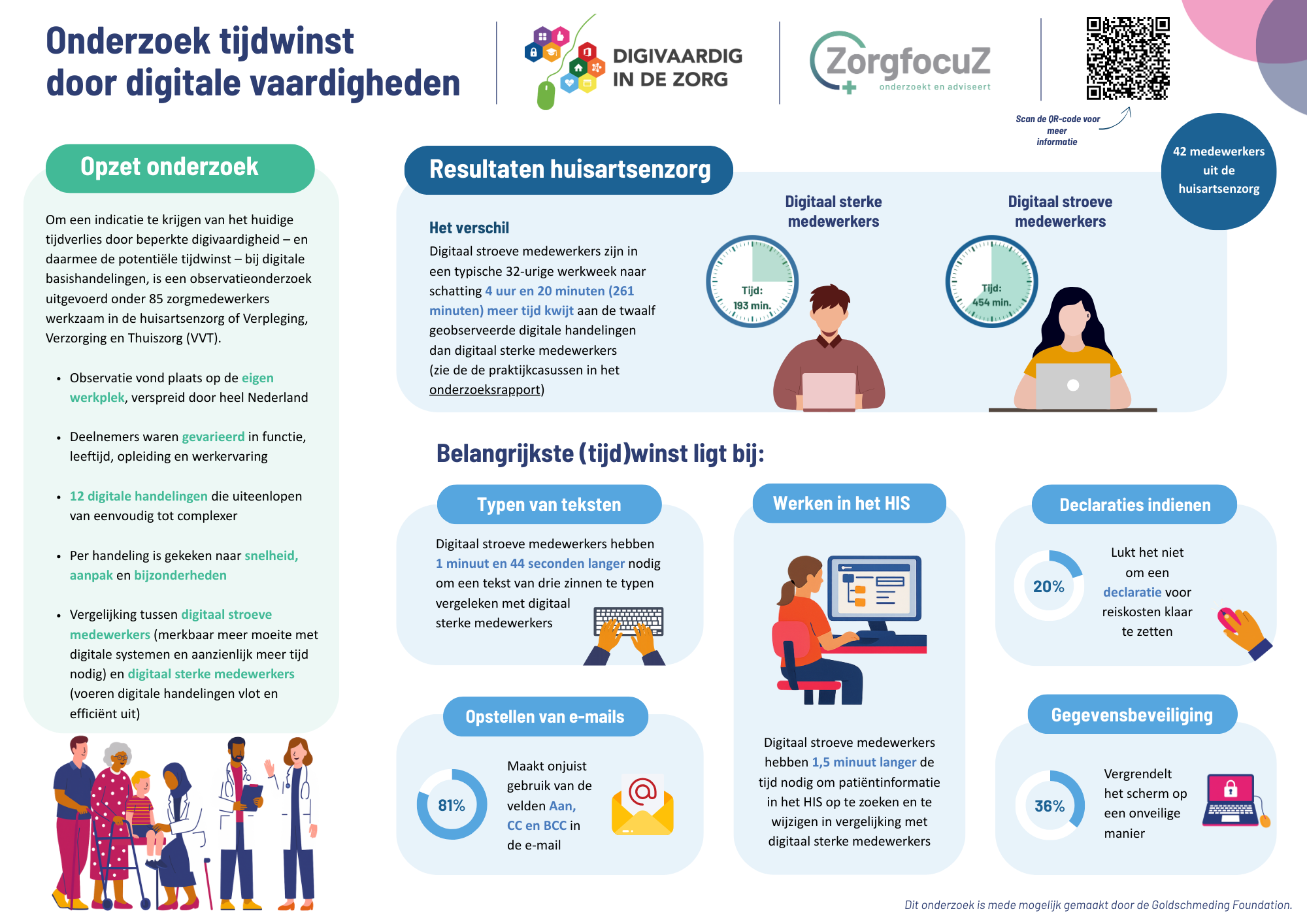 Op 30 september 2025 van 10.00 tot 11.00 uur lanceren we de resultaten van het Tijdwinstonderzoek Digitale Vaardigheden in de Huisartsenzorg en Ouderenzorg, uitgevoerd door onderzoeksbureau ZorgfocuZ in opdracht van de Coalitie Digivaardig in de Zorg van ECP. Dit onderzoek is mogelijk gemaakt door de Goldschmeding Foundation.