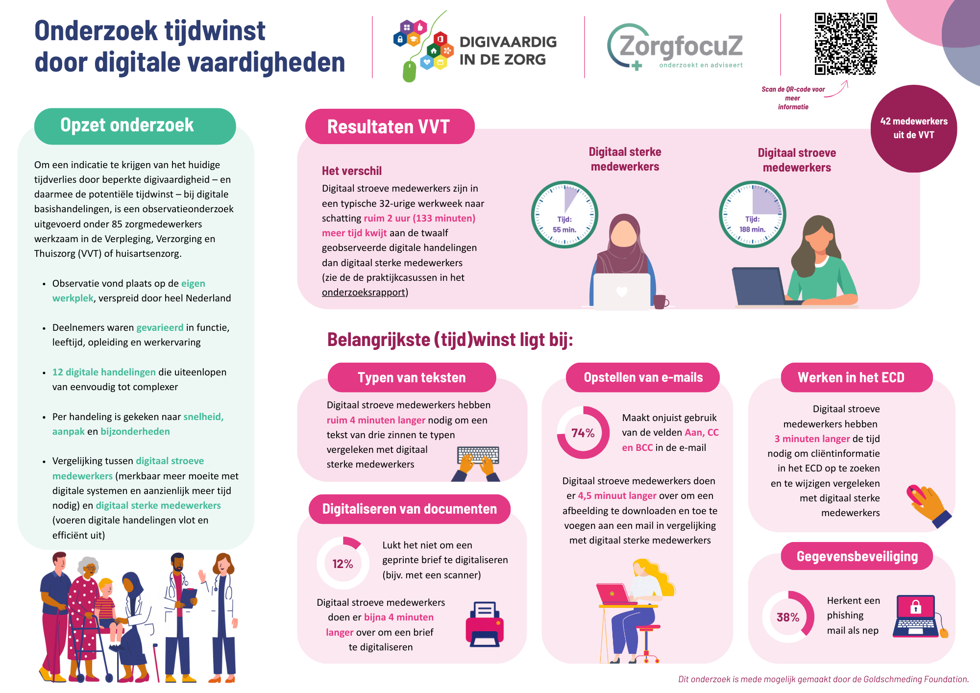 Minimaal 10-30% van de zorgmedewerkers is onvoldoende digivaardig. Een vaak onderschat probleem dat leidt tot tijdverlies, frustratie en soms zelfs vroegtijdig vertrek. Dit onderzoek laat zien hoeveel tijdwinst en stressreductie mogelijk is wanneer we investeren in digitale vaardigheden.